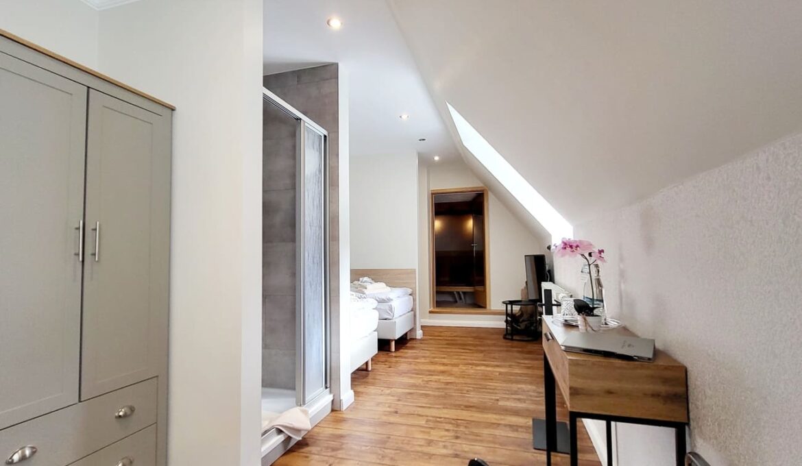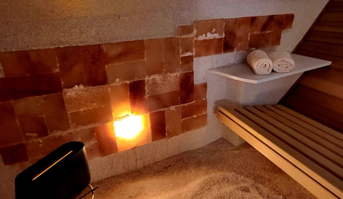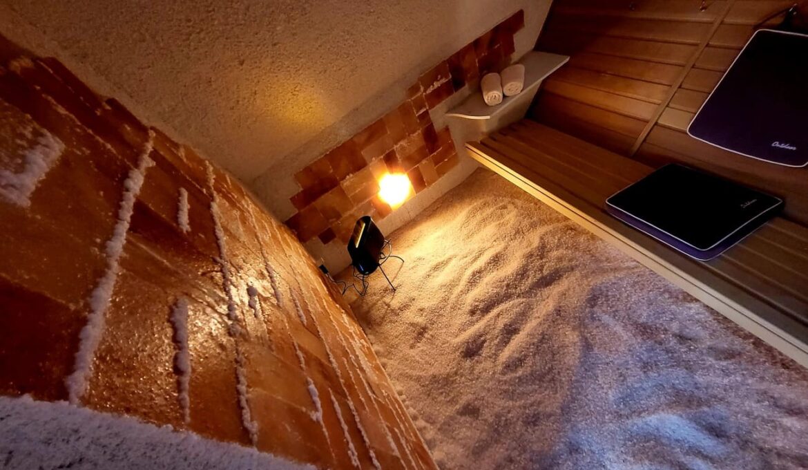 Unser Wellness-Zimmer mit großzügigem Sitzbereich und privater Salzkammer bietet Ihnen Erholung und Entspannung.